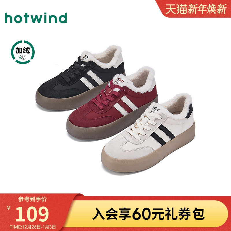 森马加绒小白鞋女款2025冬季新款百搭休闲板鞋爆款厚底二棉鞋子女