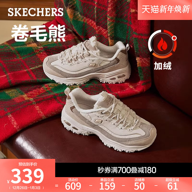 斯凯奇卷毛熊|冬季加绒熊猫鞋女鞋厚底增高老爹鞋休闲运动鞋棉鞋