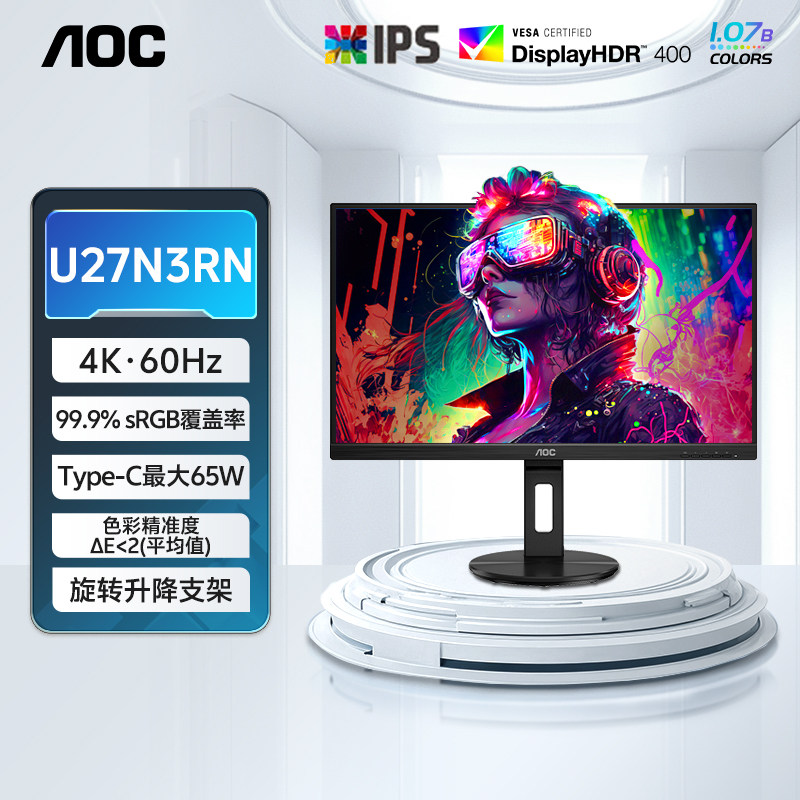 AOC27英寸4K高清IPS屏U27N3RN台式电脑显示器2KTypeC外接笔记本24