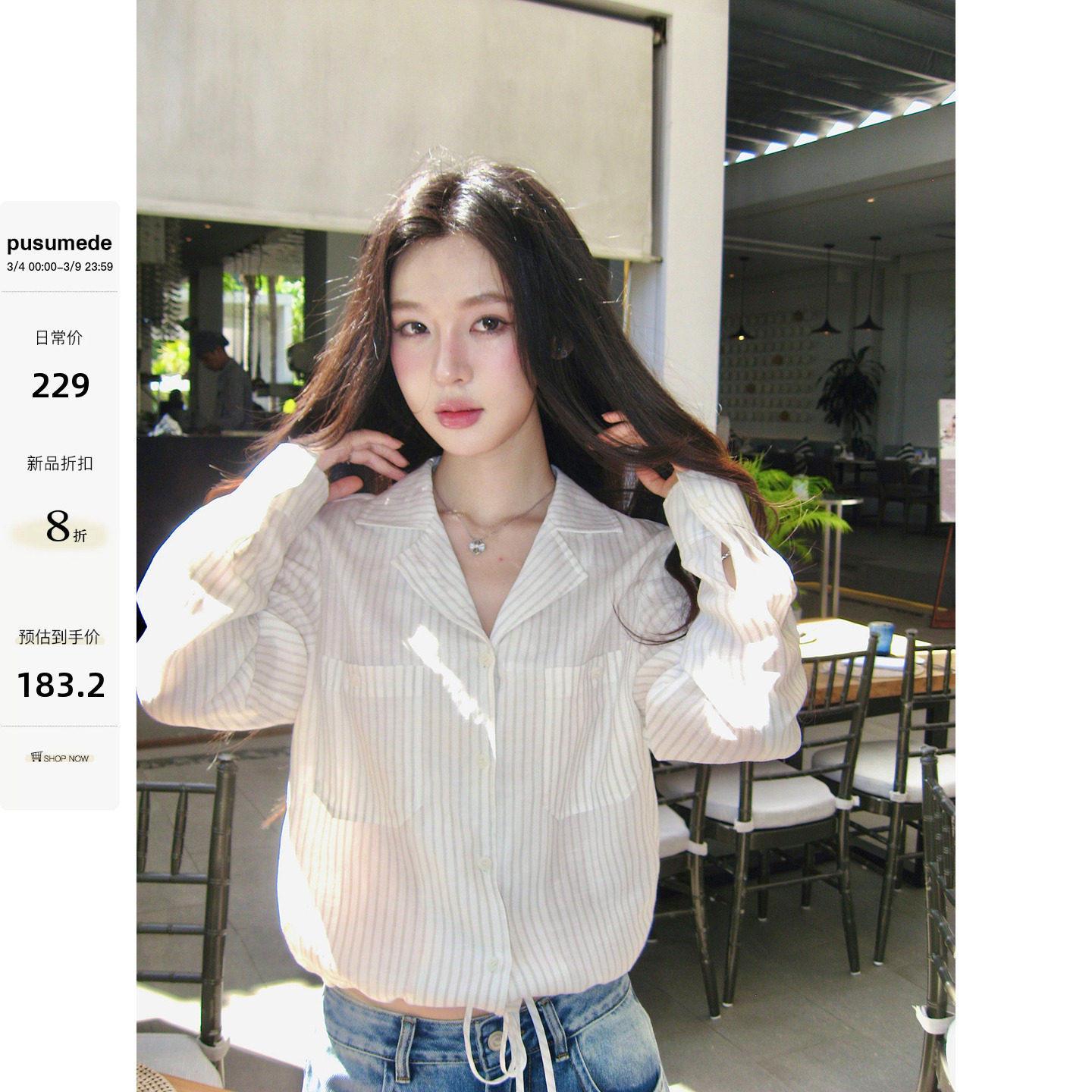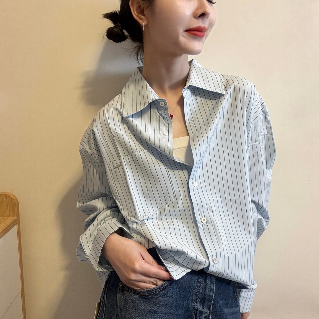 - 条纹衬衣 女 长款
