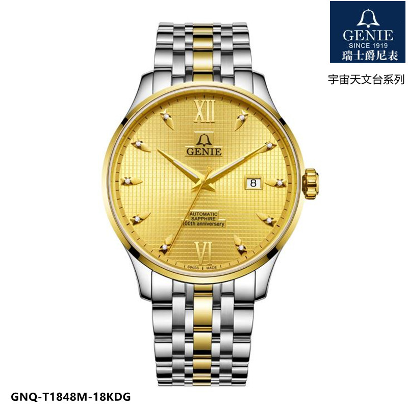 瑞士GENIE/爵尼手表 机械男表全自动18K金真钻宇宙天文台系列1848