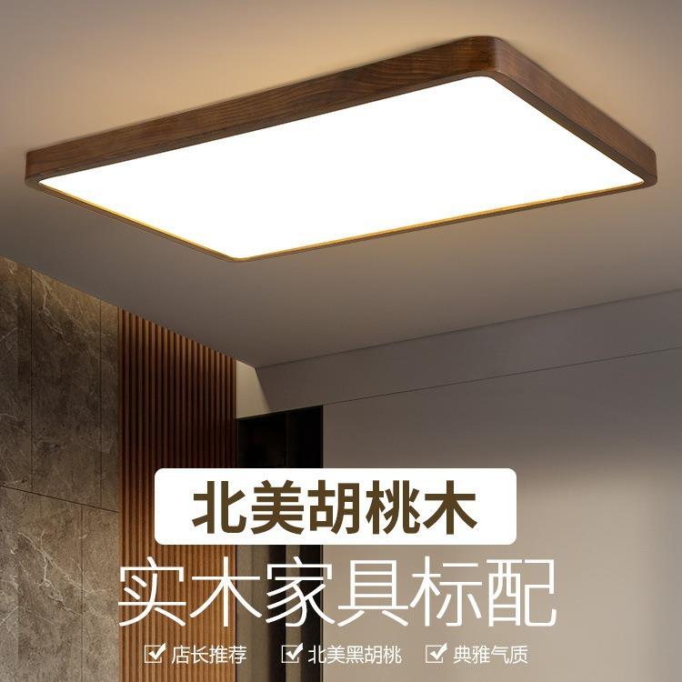 黑胡桃木新中式led吸顶灯房间主灯卧室灯具实木现代长方形客厅灯