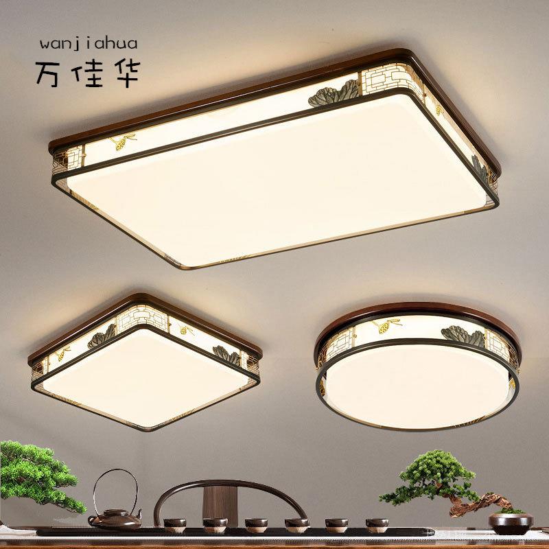 新中式led吸顶灯简约实木中国风橡木铜色新款客厅卧室餐厅书房