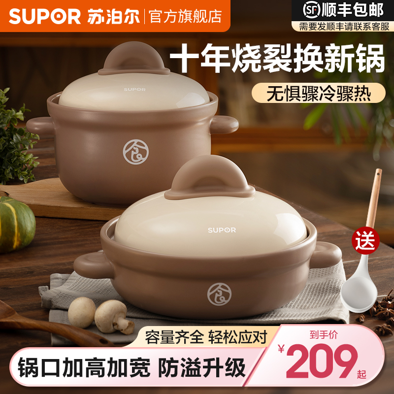 苏泊尔砂锅煲家用耐高温干烧不裂加厚陶瓷煲中药炖锅煲汤锅煲仔饭