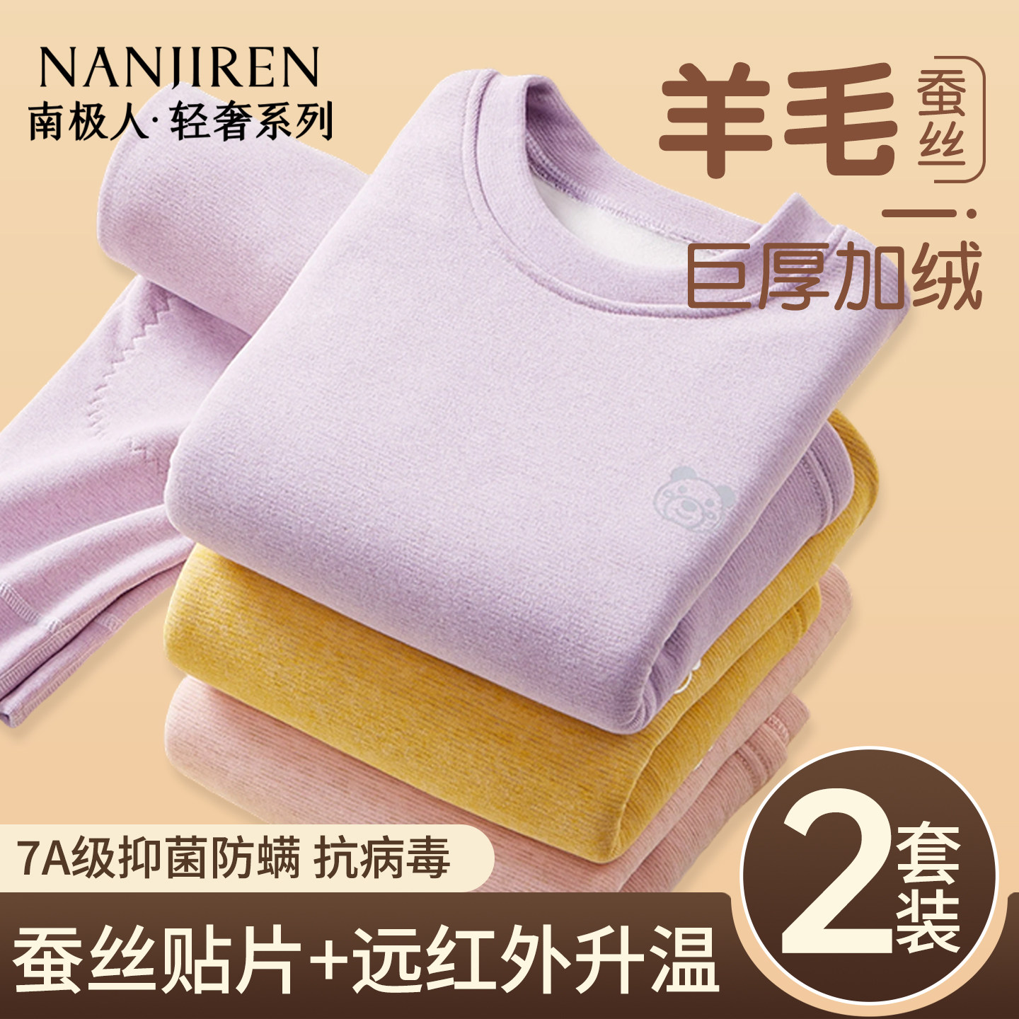 南极人儿童保暖内衣套装打底冬羊毛蚕丝男女童德加绒加厚秋衣秋裤