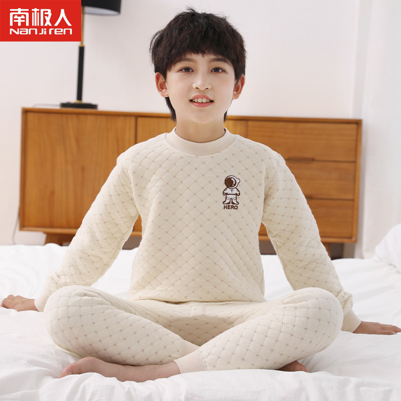 南极人男童保暖内衣套装冬季纯棉加厚中大童三层夹棉儿童男孩秋衣