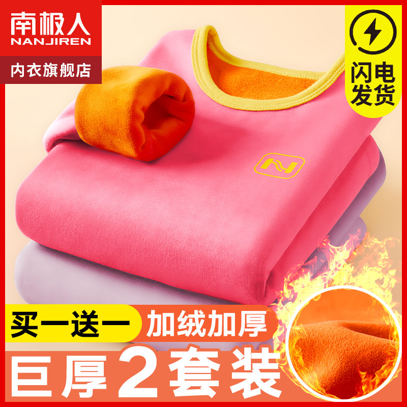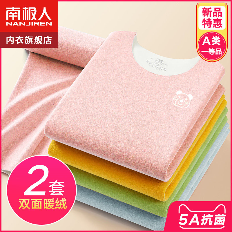 南极人儿童绒德保暖内衣套装女孩圆领加厚无痕秋衣秋裤女童中大童