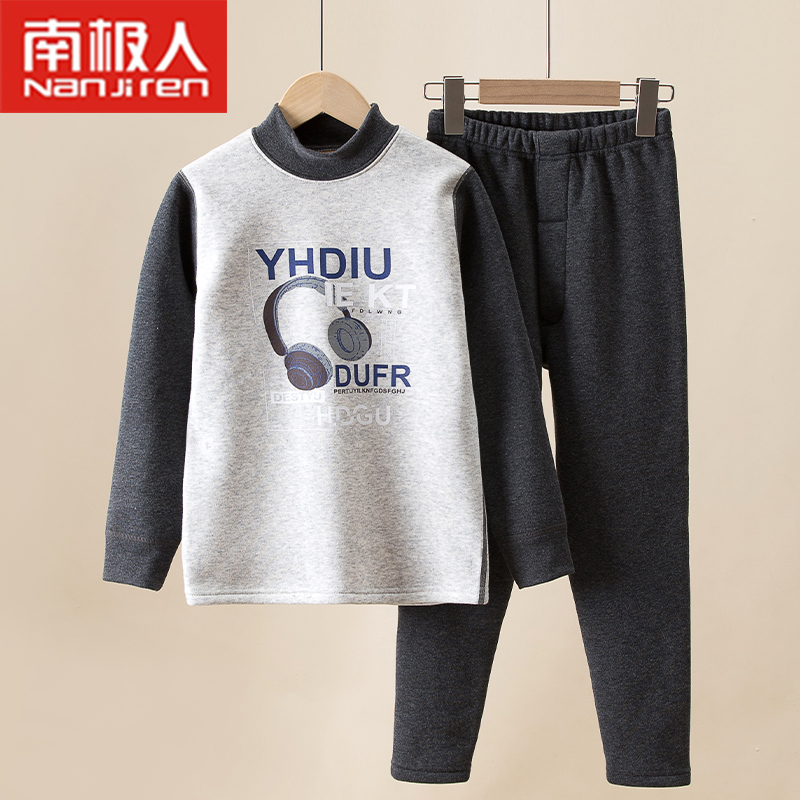 南极人儿童保暖内衣套装男童加绒加厚内衣中大童秋衣秋裤冬青少年