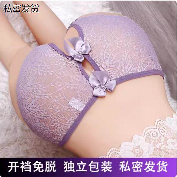 女士可内裤插款诱惑老公性感情侣蕾丝情调开 裆平角丁字裤免穿脱