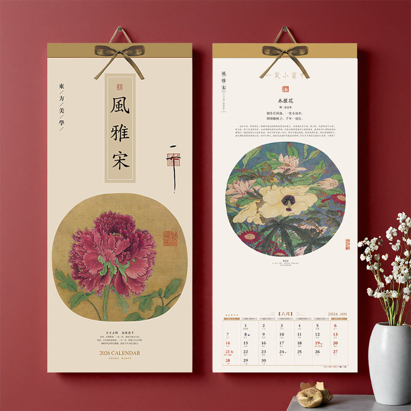 挂历2026年新款大六开家用挂墙式黄历大号吊历中国风传统月历客厅装饰墙贴手撕日历马年高档挂历定制礼品