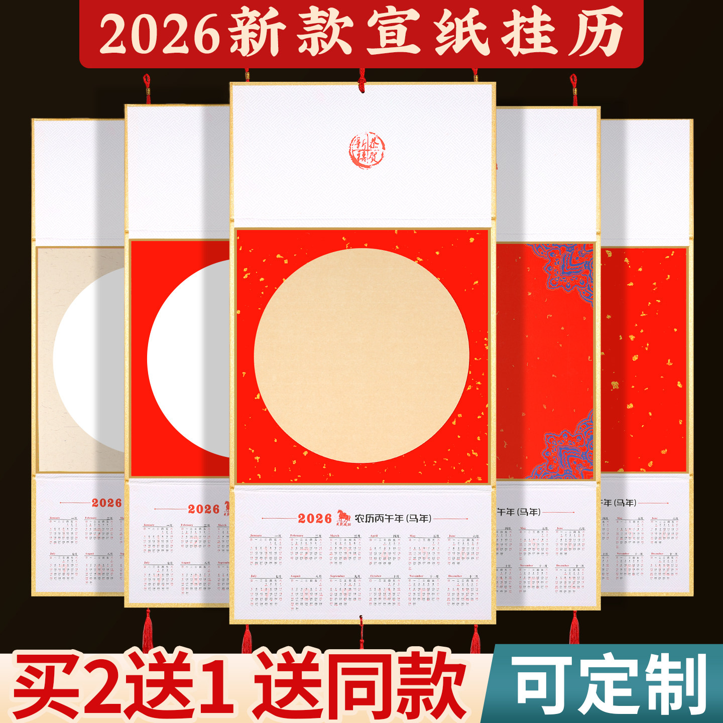 2026年挂历高档家用挂墙新款马年挂历定制日历挂墙大号创意挂历中国风折叠硬卡万年红福字挂轴书画万年历文创