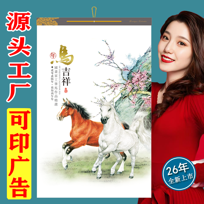 2026马年挂历家用挂墙吊牌定制日历中国风福字金箔大号万年历印刷订做福牌月历公司创意广告logo新年手撕黄历