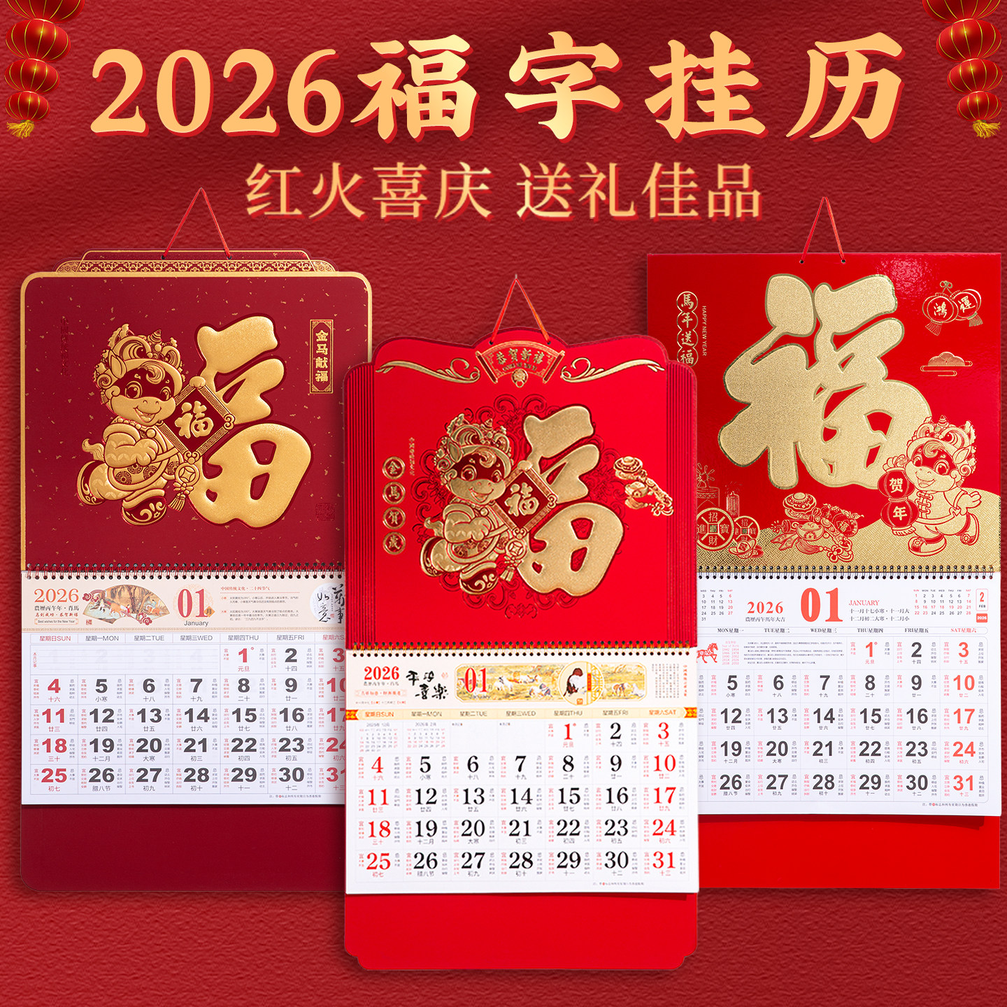 金箔福字挂历2026年新款定制公司广告创意月历定做中国风福牌吊牌2025年家用挂墙黄历大号手撕日历马年挂历