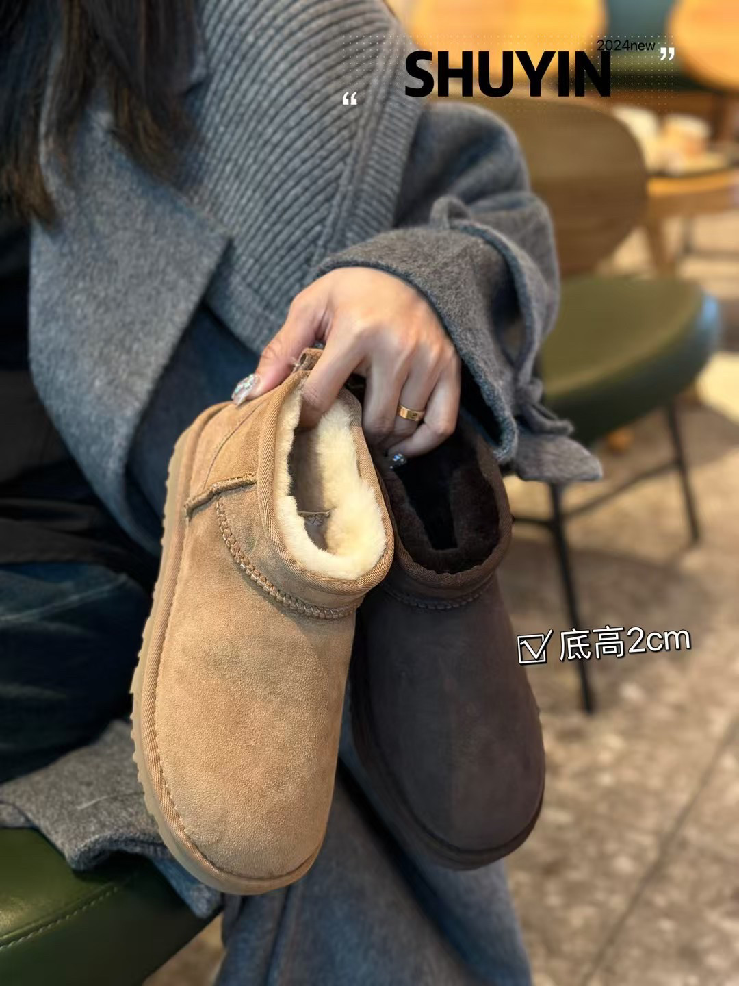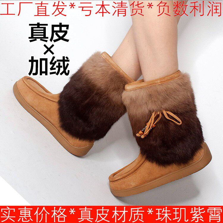 - 皮毛一体厚底雪地靴女