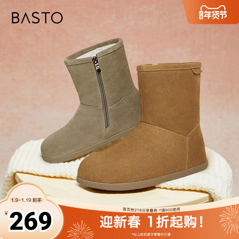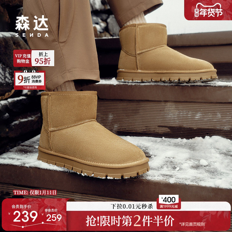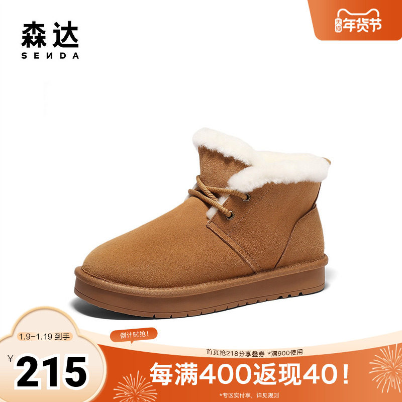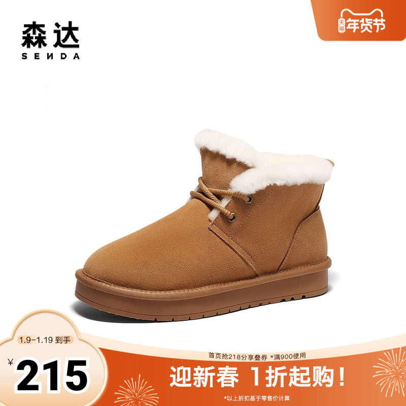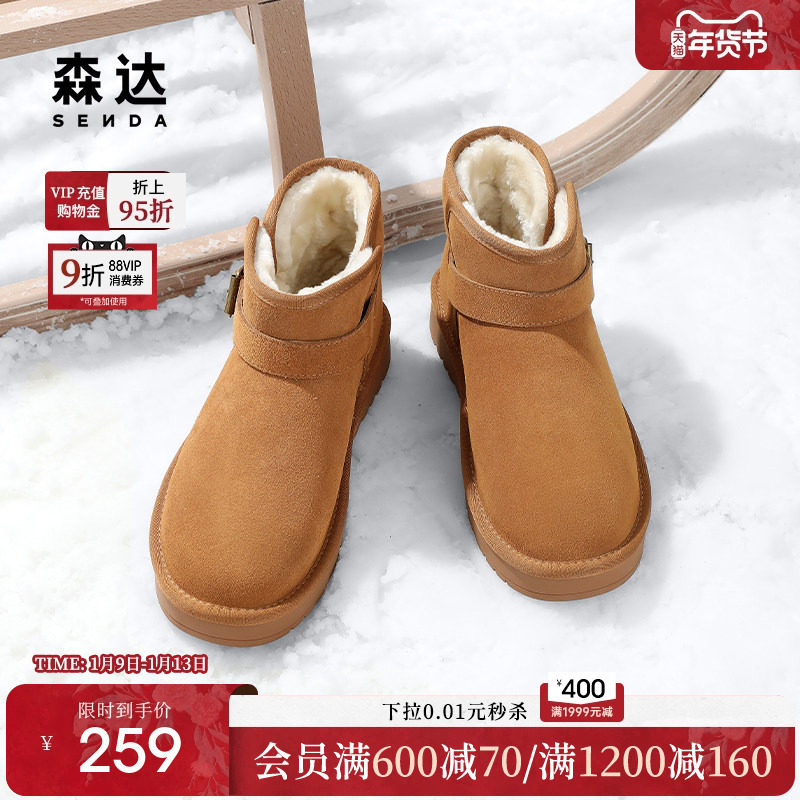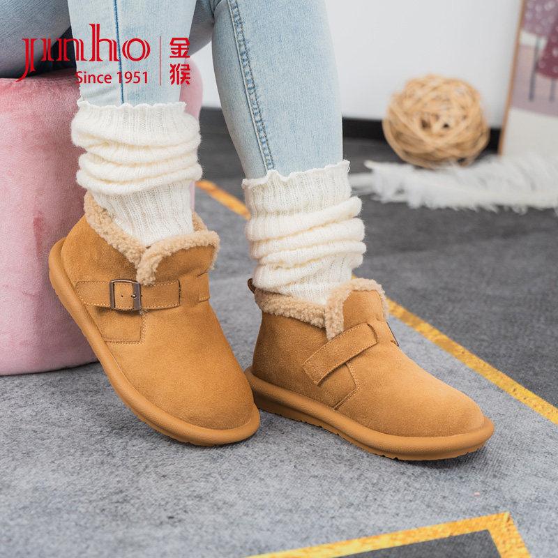 - 雪地靴真皮短靴女加绒