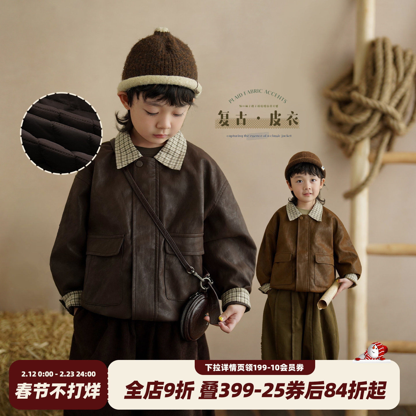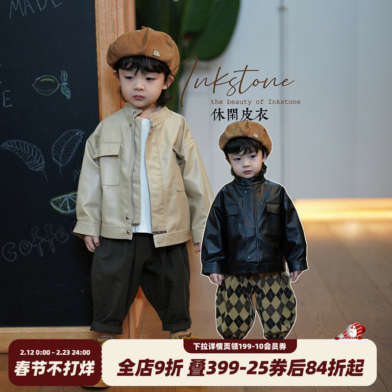 砚台家童装男童机车外套冬装痞帅男宝宝夹棉皮衣春秋儿童复古夹克