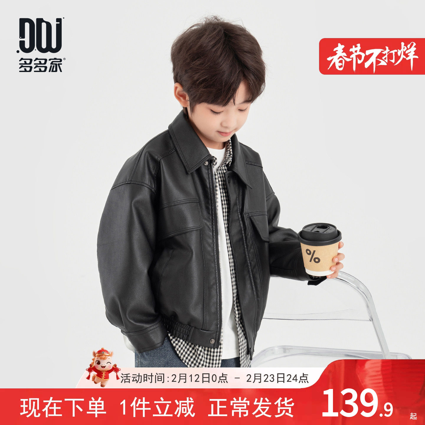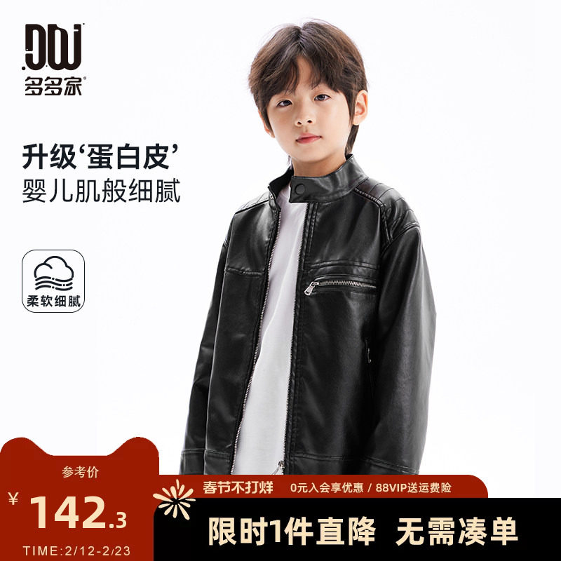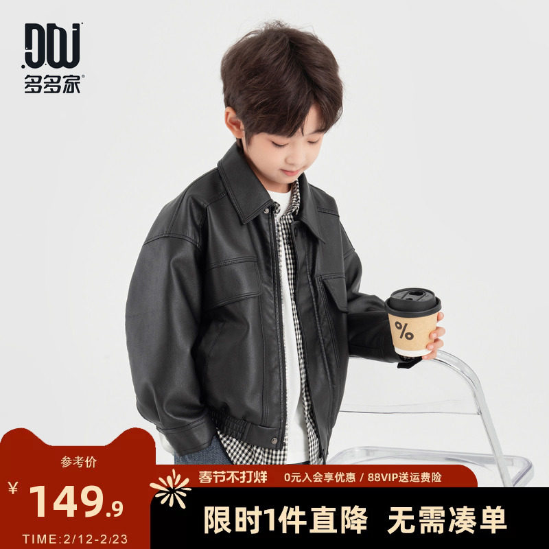 多多家男童皮衣外套2026春秋新款儿童中大童宽松休闲夹克上衣秋装