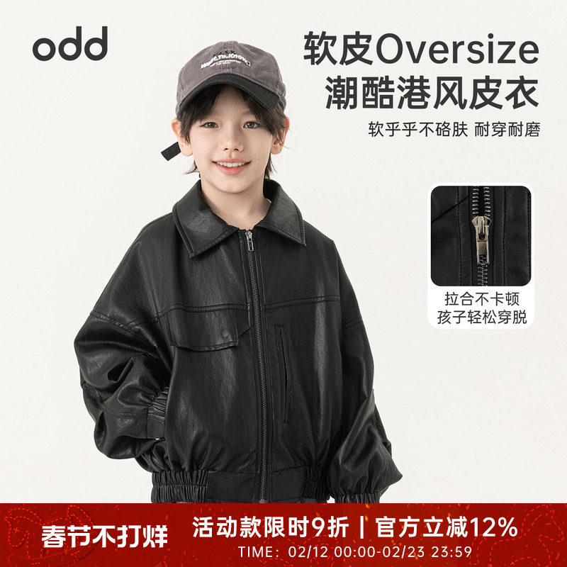 oddtails男童皮衣外套儿童痞帅夹克春秋款2026新款洋气秋装上衣潮