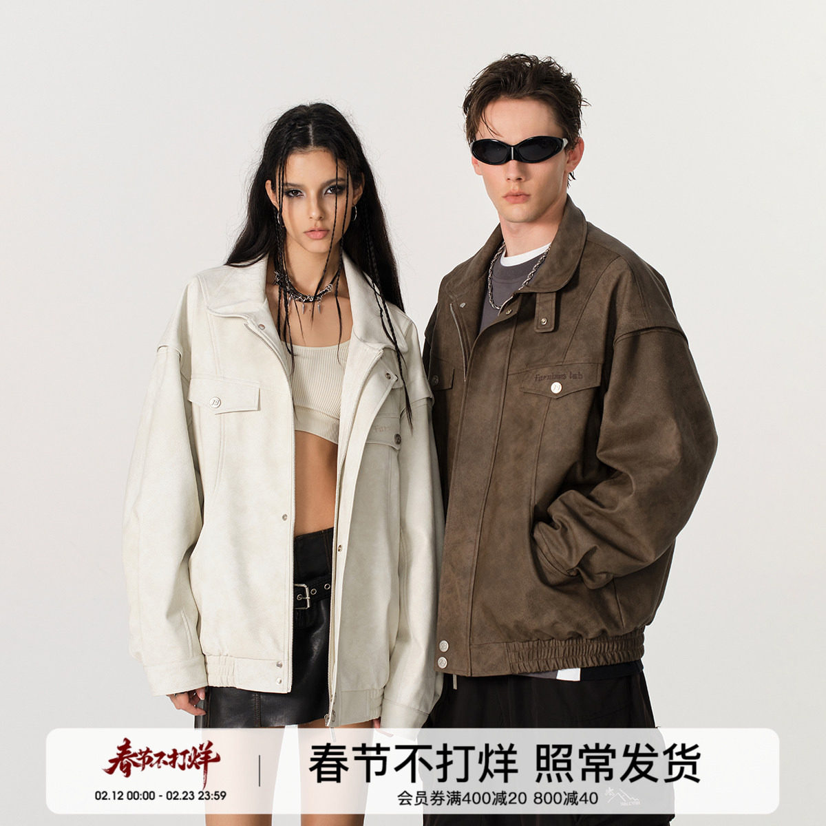 WIND BLOWS美式复古立领工装夹克2026春秋季男女装PU皮衣夹棉外套