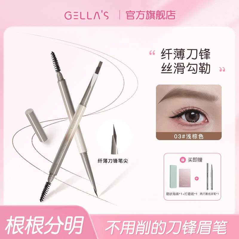 gellas刀锋极细眉笔砍刀形自动眉笔根根分明野生眉不脱色新手免削