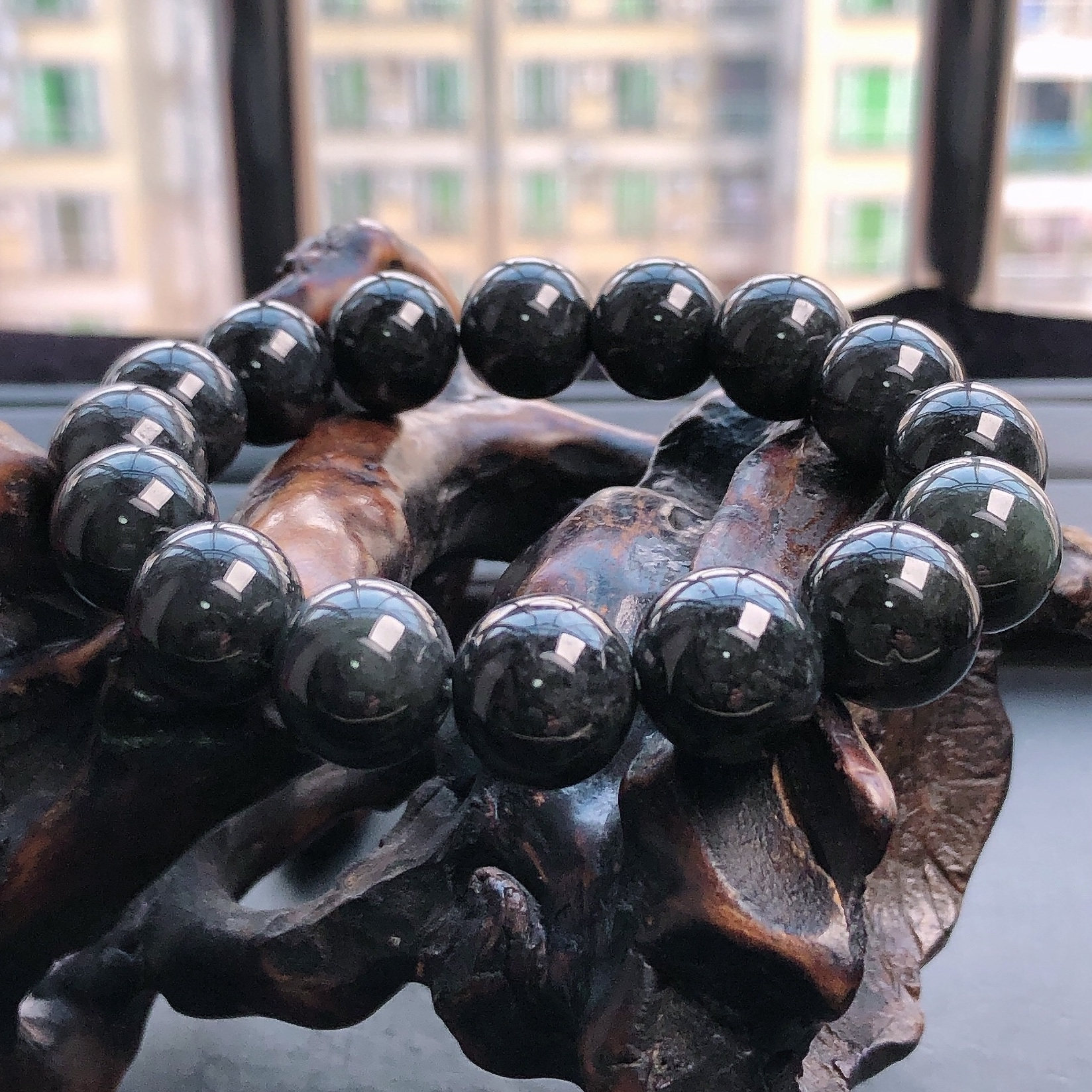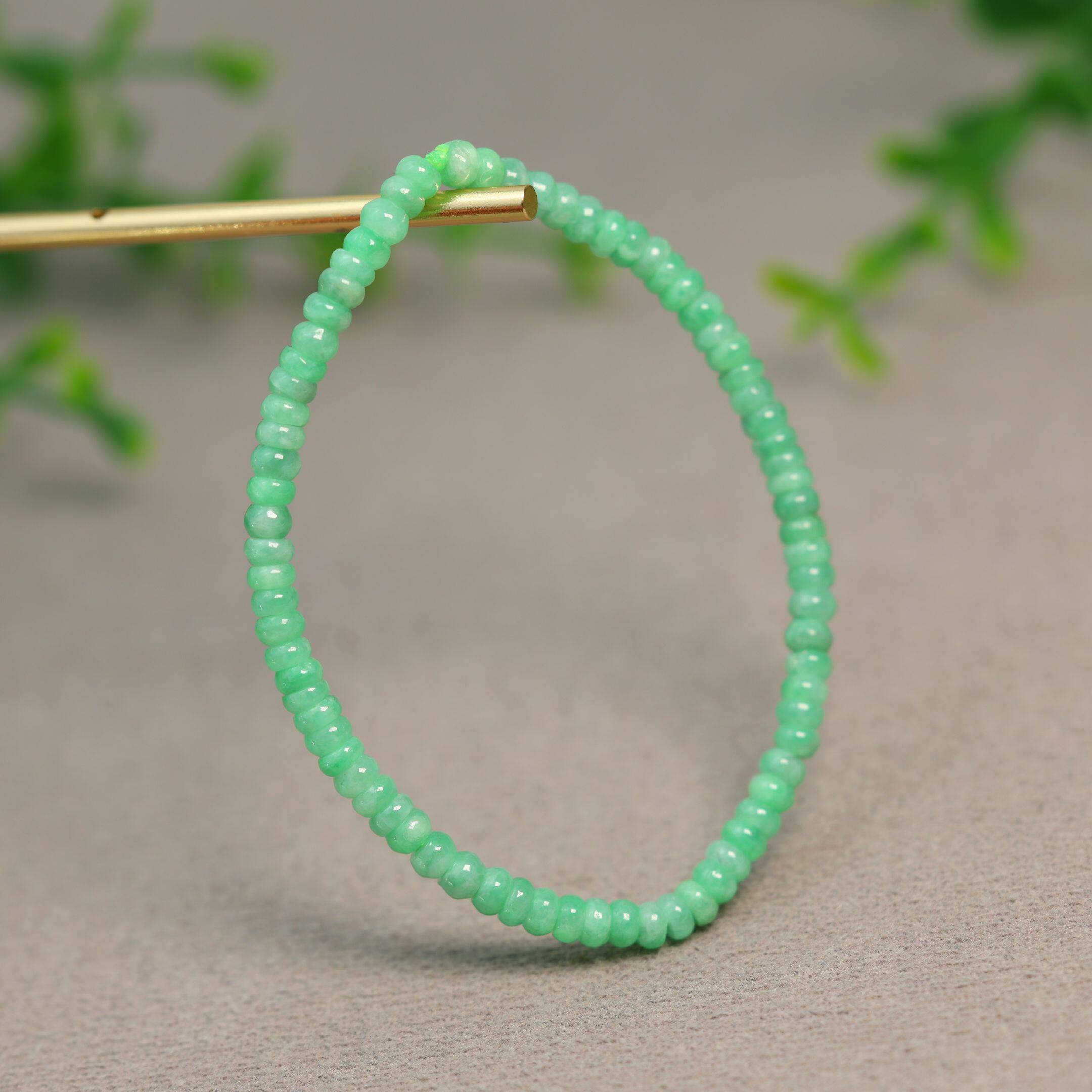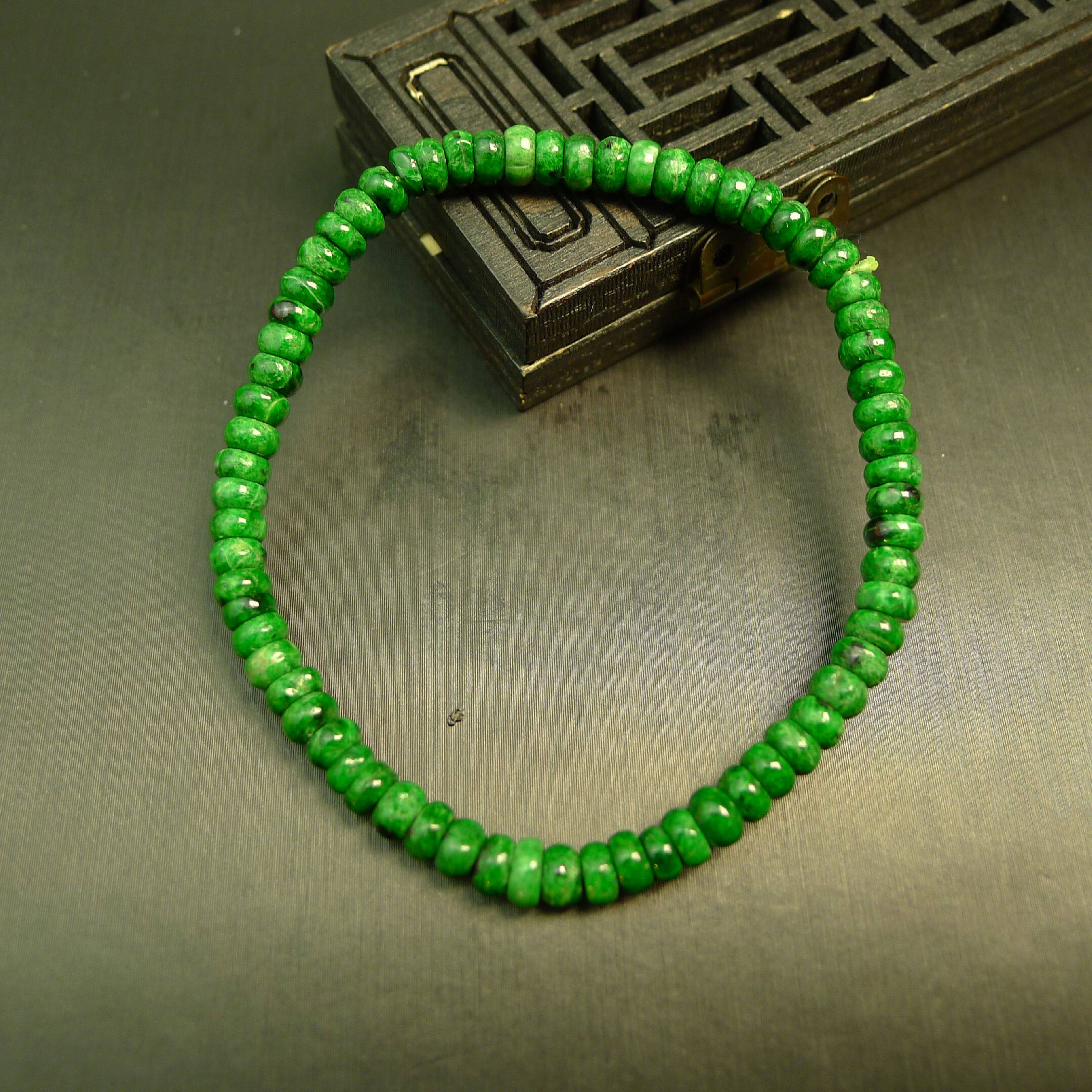 自然光实拍/缅甸天然翡翠A货乌鸡圆珠手链手串多样性发货其一带证