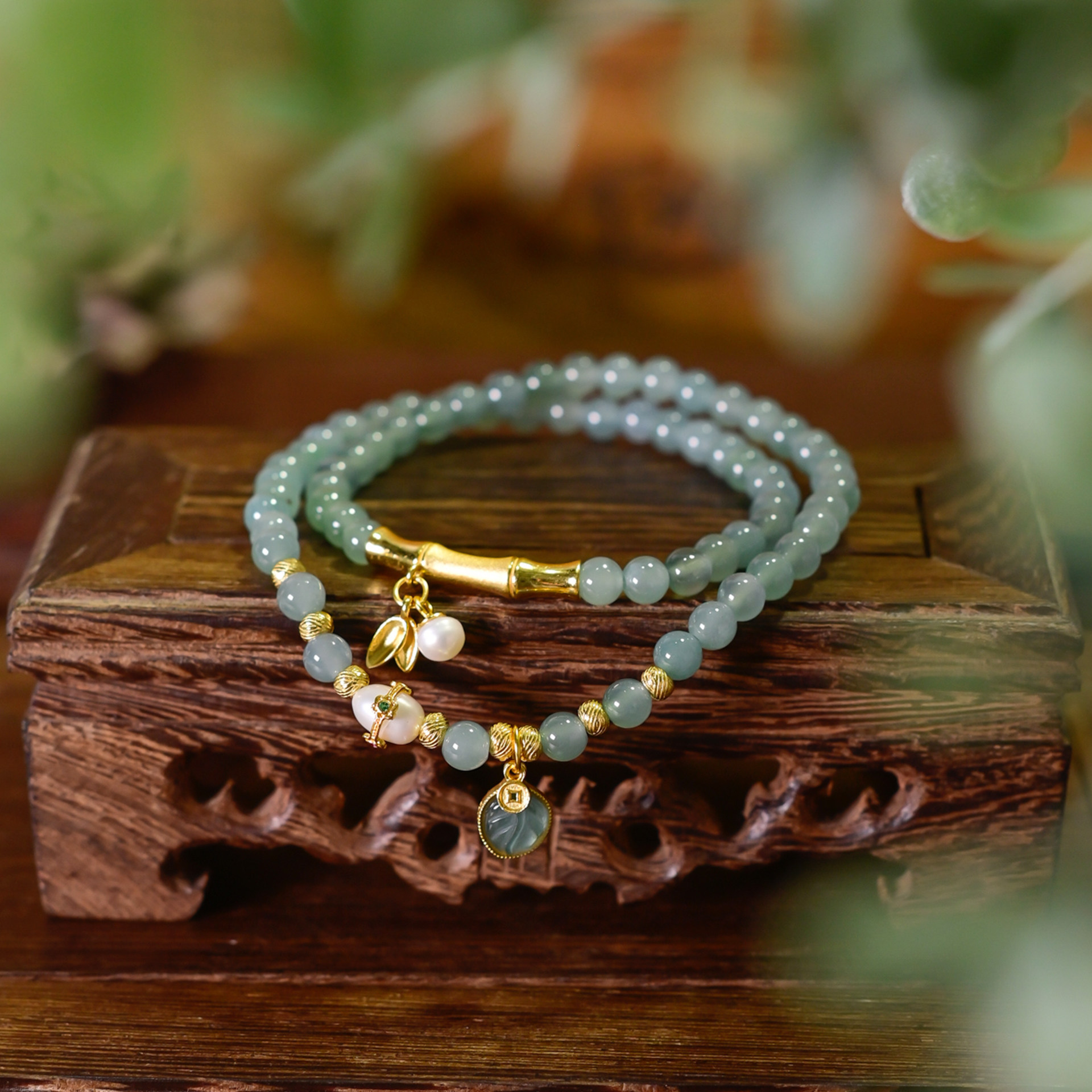 PIPISHOP 天然A货干青翡翠方珠925银镀金南红玛瑙老型珠单圈手串
