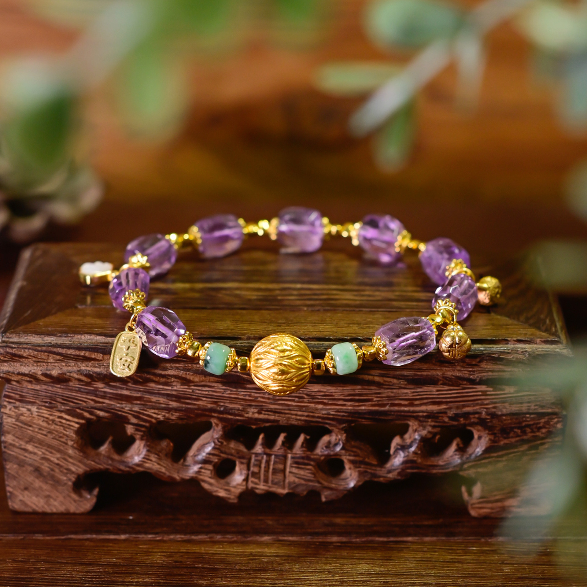 PIPISHOP 天然A货翡翠算盘珠925银镀金配饰切面紫水晶路路通单圈