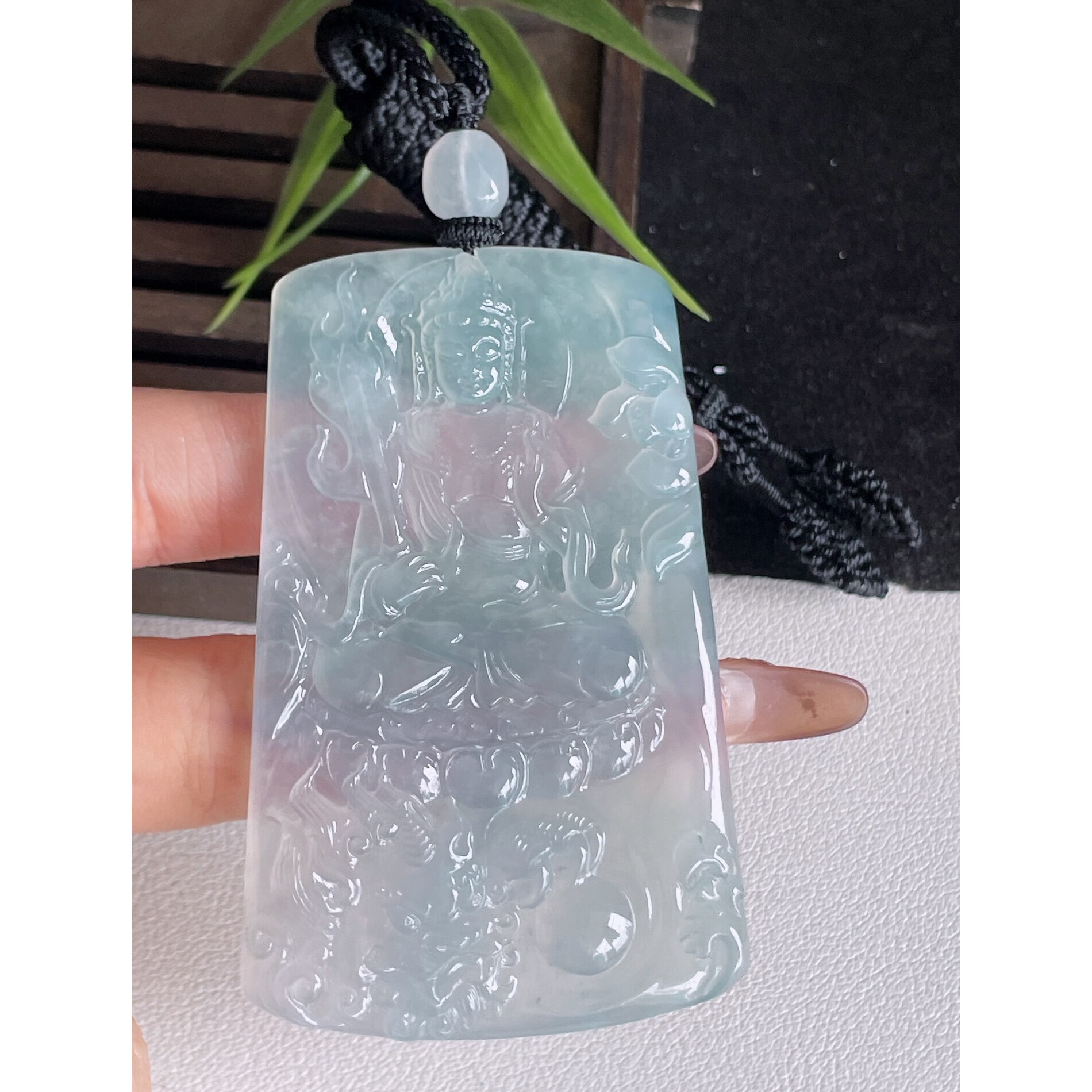 一手货源缅甸天然A货翡翠玉石挂件精雕罗兰飘花文殊菩萨翡翠吊坠