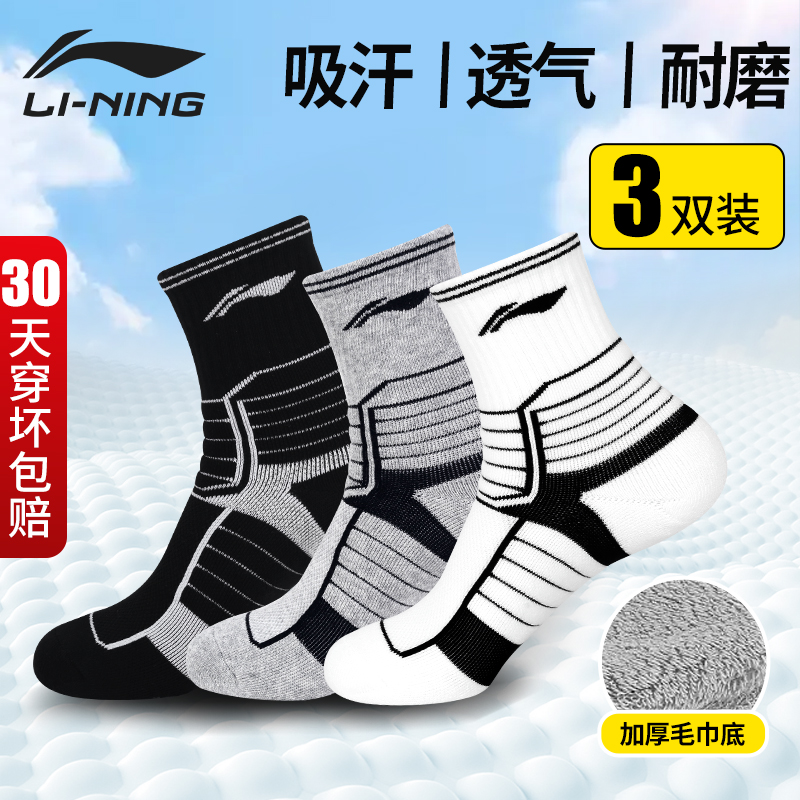 李宁袜子夏季男运动袜女健身跑步袜专业吸汗透气中筒加厚棉篮球袜