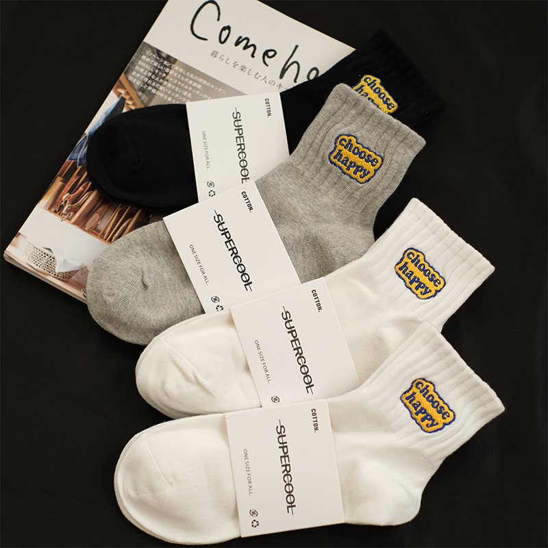 ins潮春夏季男女士中筒袜黑白纯棉运动袜简约短袜长筒袜无骨防臭
