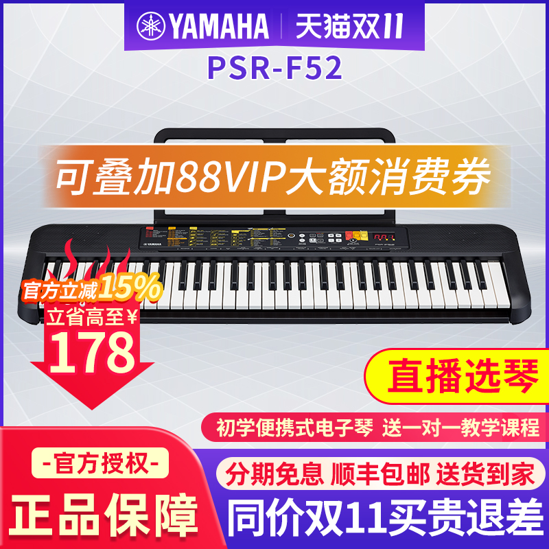雅马哈电子琴PSR-F52教学家用儿童初学者入门成人幼师61键便携式