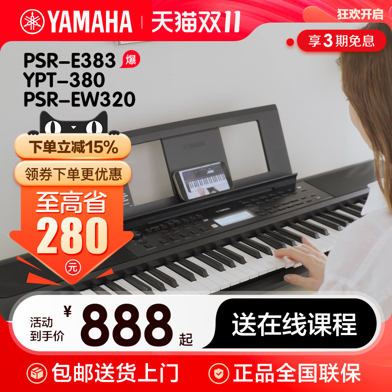 雅马哈电子琴官方旗舰店PSR-E383初学者入门61键成年儿童家用专业