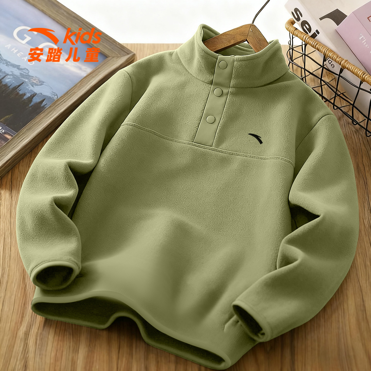 安踏儿童抓绒卫衣男童2025秋冬新款运动上衣摇粒绒立领保暖套头衫