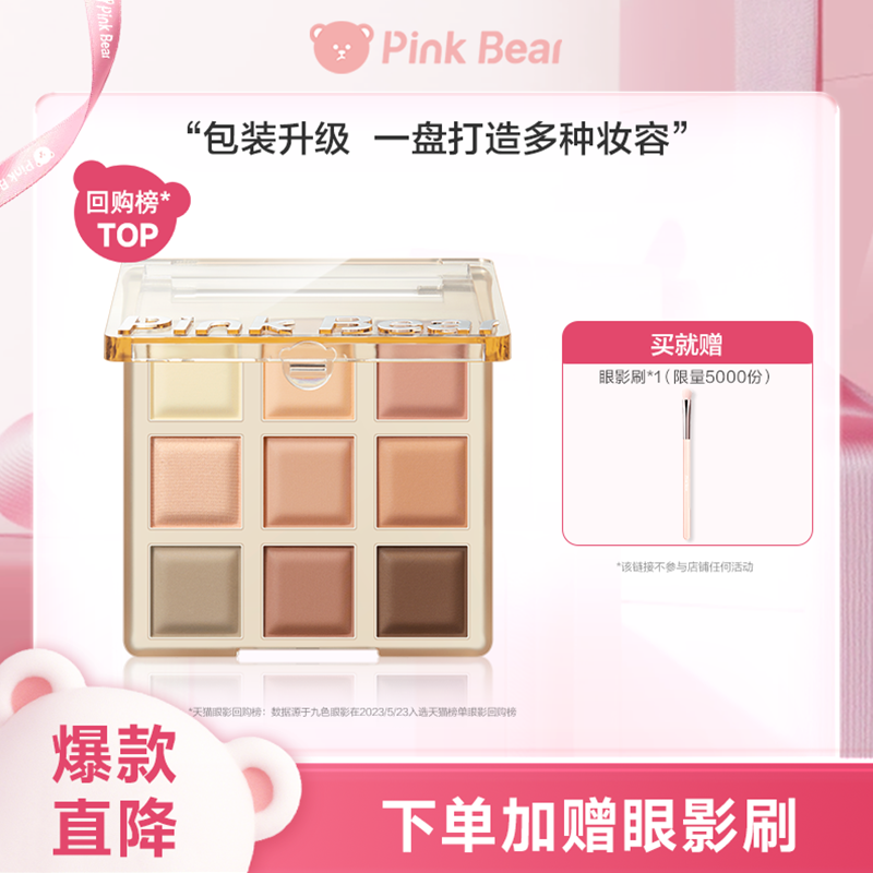 【达人专享】pinkbear皮可熊哑光眼影盘九色大地色眼影礼物