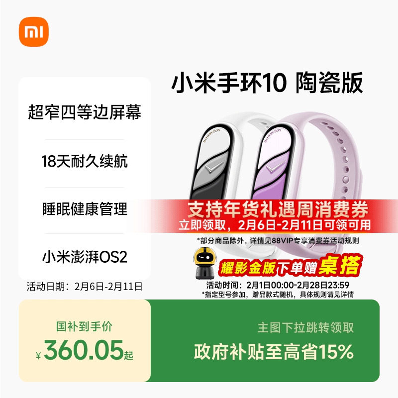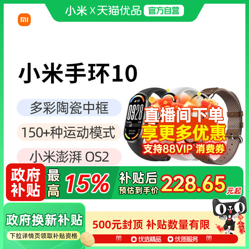 【政府补贴15%】小米手环10运动健康防水睡眠心率智能手环NFC全面屏长续航 小米手环9升级款