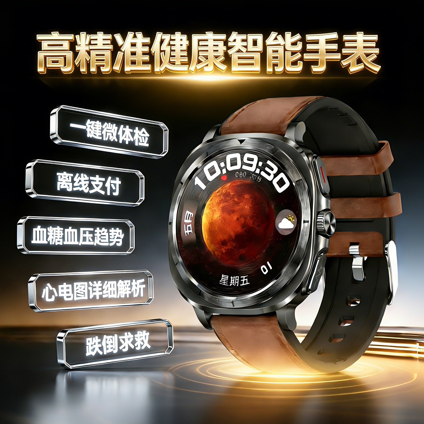 适用华为全新升级高精准【离线支付+NFC门禁】血糖血脂尿酸蓝牙通话智能手表测血压心电图血氧心率手环