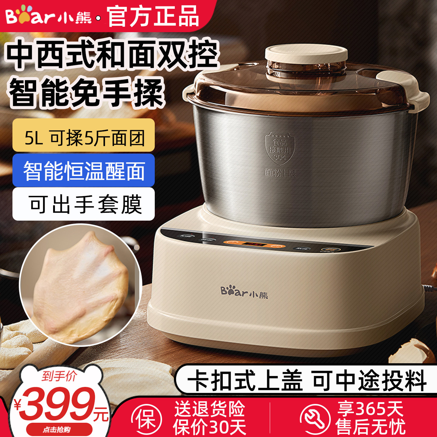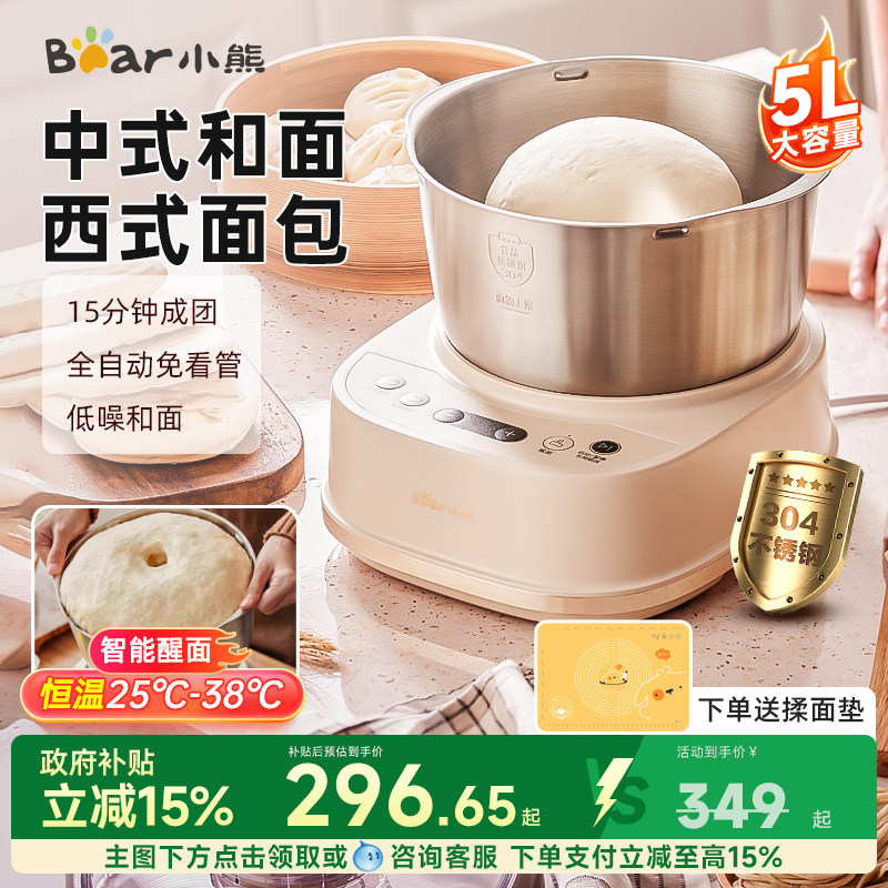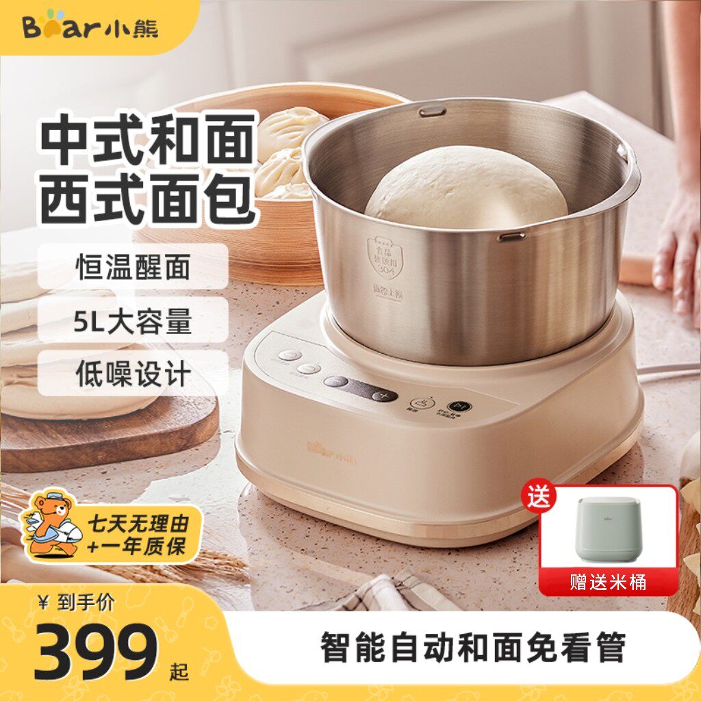 小熊5L和面机揉面全自动多功能电动小型新款不锈钢厨师发酵一体