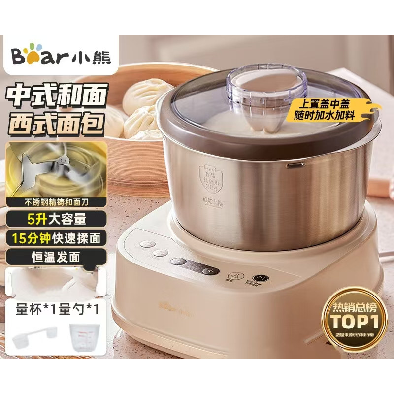 小熊新款和面机家用发面机厨师机全自动揉面搅拌发酵5L醒面一体机