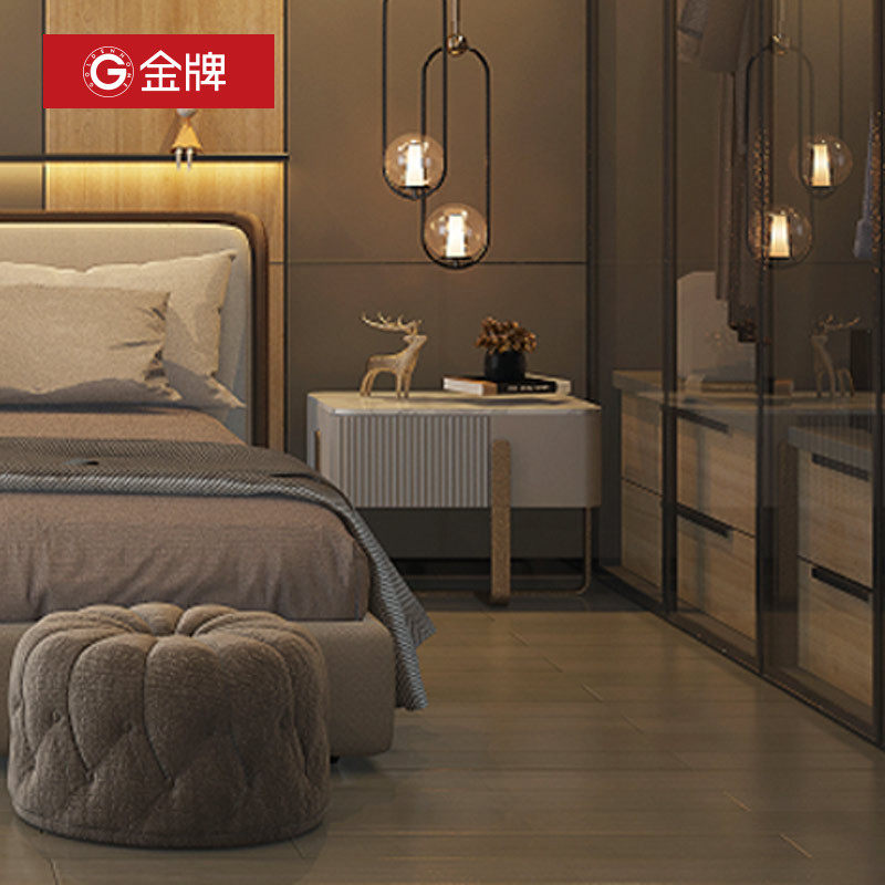 鱼骨人字拼地板实木复合地板三层新实木地板金刚面地热原木风卧室