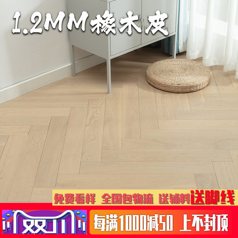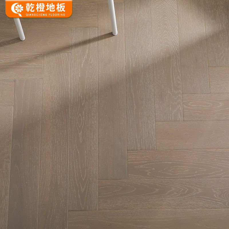 乾橙橡木鱼骨拼人字拼地板实木多层复合白色浅灰色轻奢风地暖可用