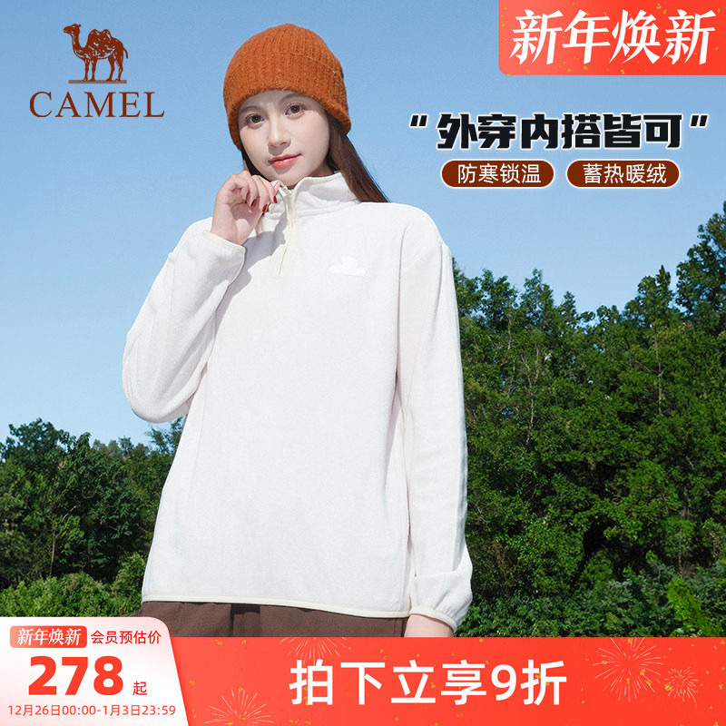 骆驼户外抓绒衣女半拉链立领抓绒衣男抗静电保暖摇粒绒抓绒衣外套