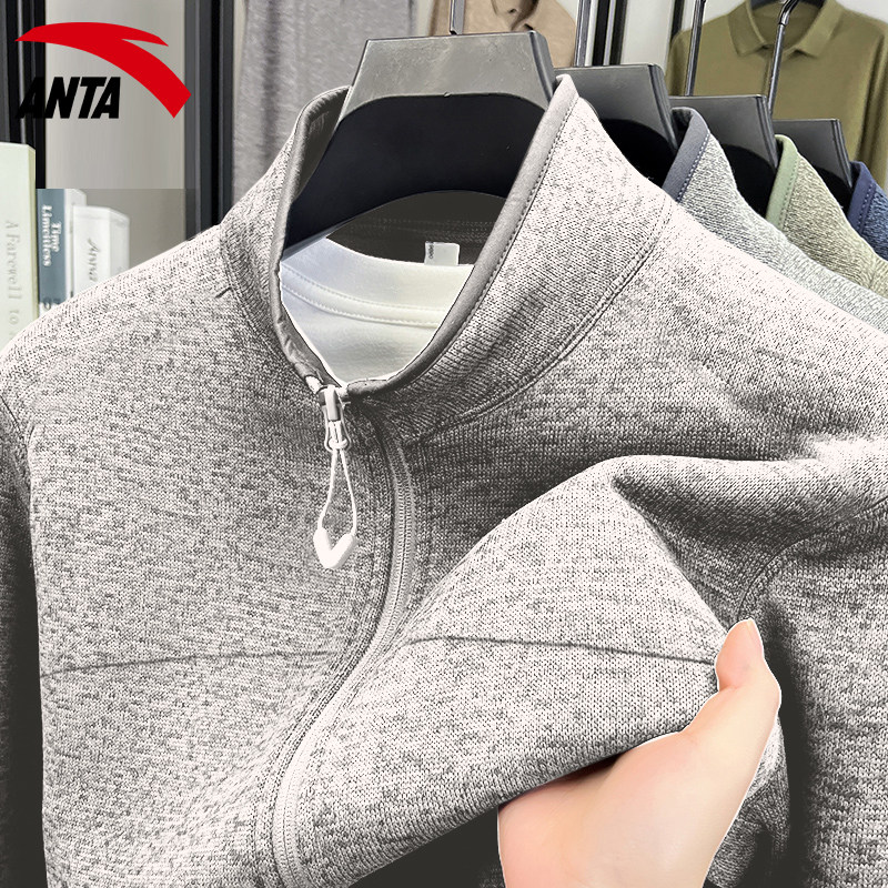 安踏火壳3.0抗静电粗针抓绒衣男士保暖2025秋冬新款内胆立领外套