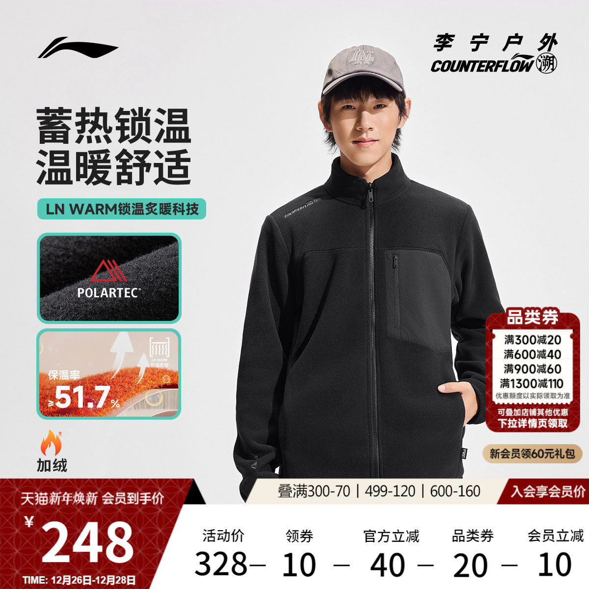 李宁户外CF溯|Polartec抓绒衣男士冬季新款加绒保暖摇粒绒外套