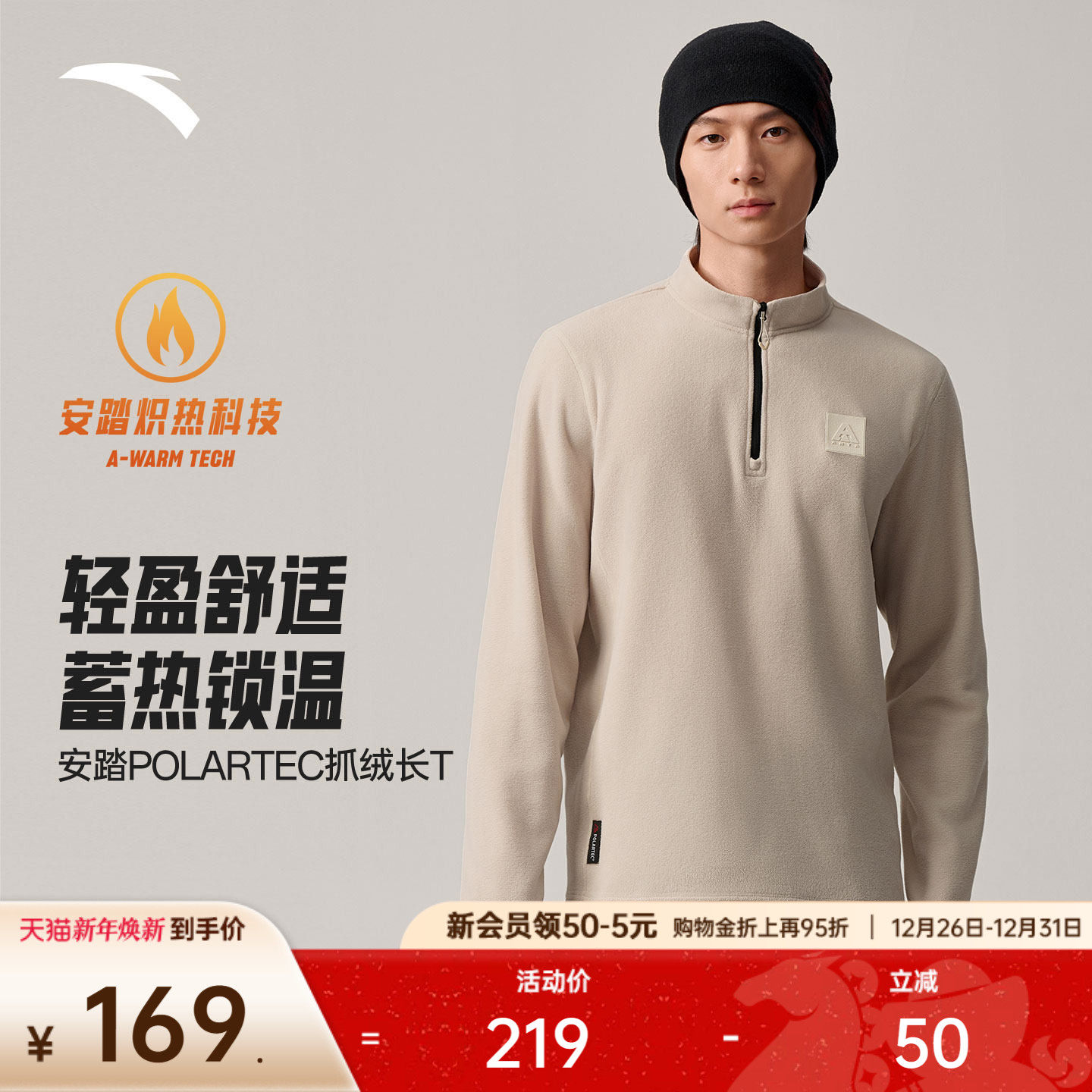 安踏大地之壳丨Polartec长T半拉链抓绒衣男士户外摇粒绒针织长袖