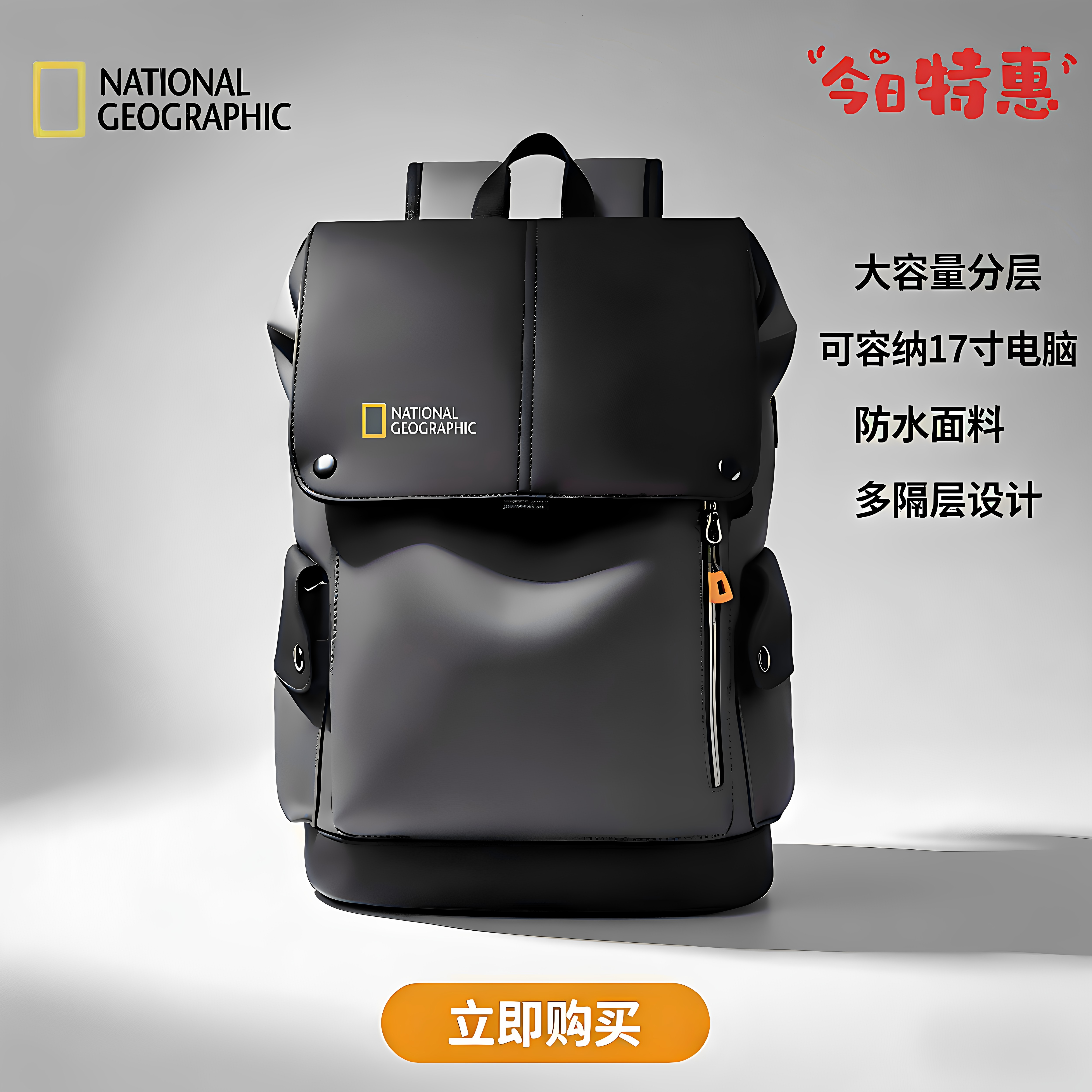 National 国家地理双肩包大容量男商务防水17寸电脑包书包旅行包