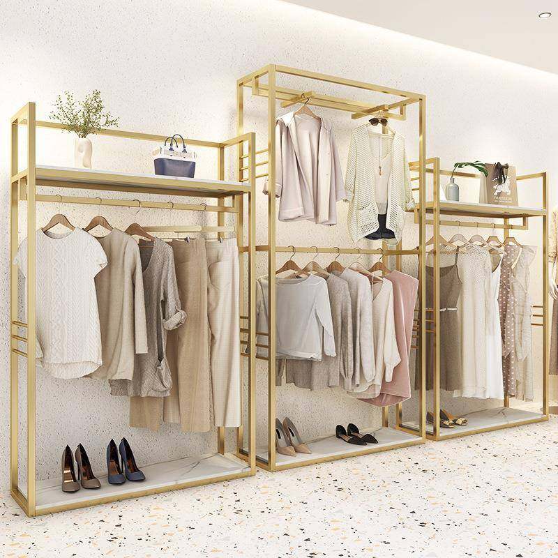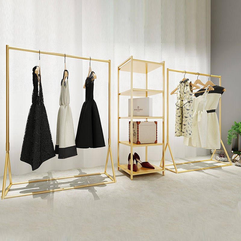 服装店货架落地式挂衣架包包架轻奢女装店展示架商场挂衣架子金色