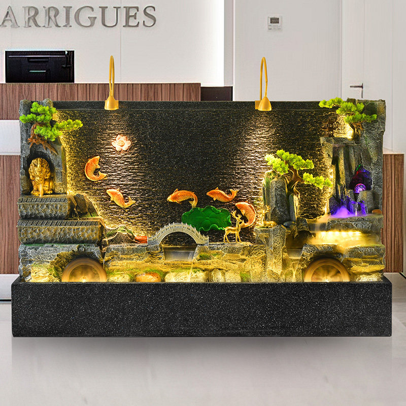 简约水幕墙流水屏风摆件招财鱼池假山造景公司庭院循环水落地装饰