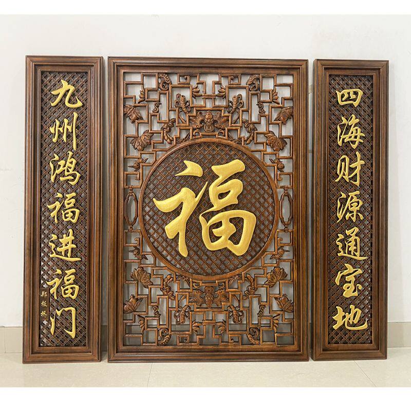 东阳中堂屏风墙饰木雕壁挂福字玄关香樟木挂件实木客厅装饰画摆件