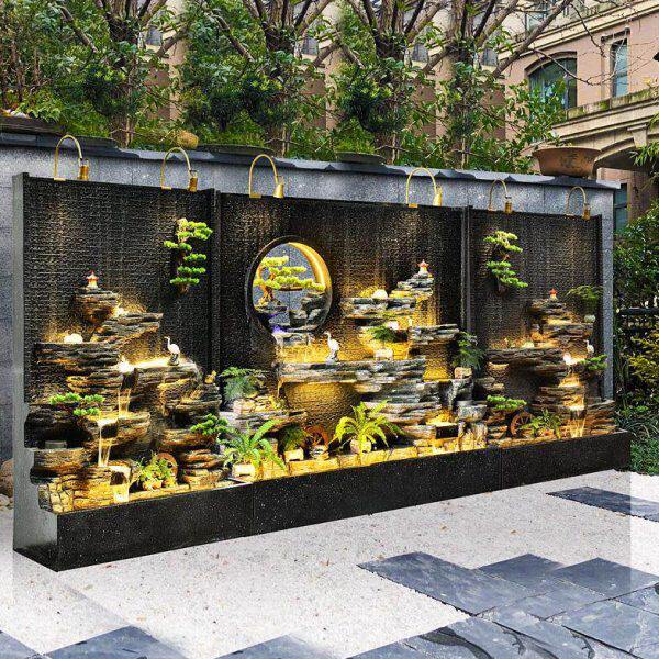 庭院造景水幕墙屏风摆件假山流水喷泉室内客厅玄关公司办公室隔断