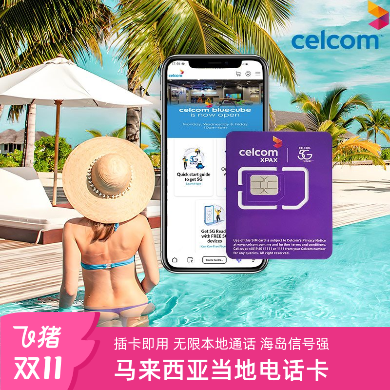 马来西亚5G/4G电话卡手机上网celcom无限流量卡吉隆坡仙本那亚庇